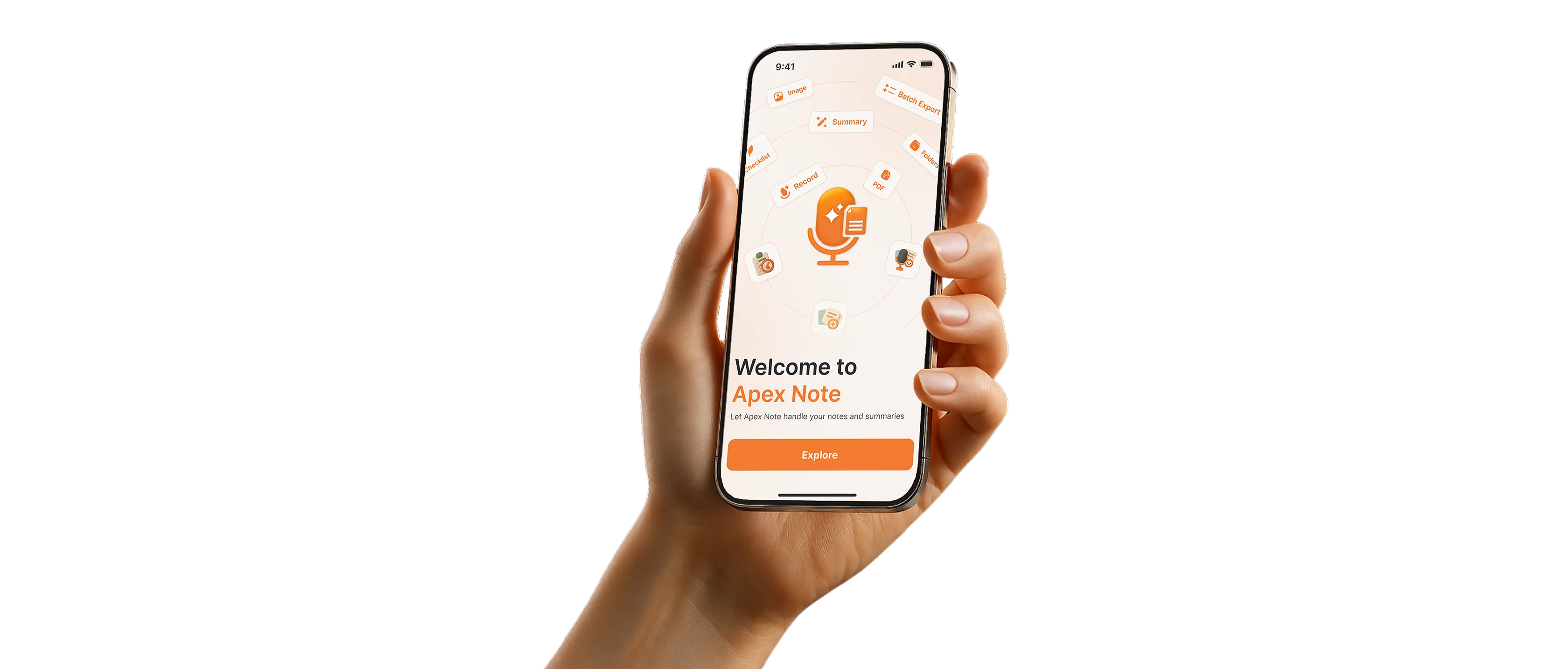 Apex Note is an AI-powered note-taking assistant that records, transcribes and summaries your recordings, audio, images and documents with high accuracy. With ApexOn, you stay focused on what truly matters with peace of mind knowing you will never miss important details.